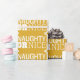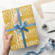 Holiday wrapping paper with white text that reads Naughty or Nice. You can customise the gold background to be any colour you want.