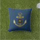 Gold Nautical Anchor Outdoor Pillows Navy Blue