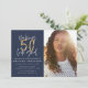 Making 50 look good photo birthday invitation. Modern script text navy blue and gold effect design. Part of a collection.