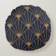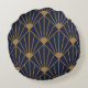 Gold Navy Blue Art Deco Fan Pattern Round Cushion