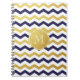 Gold & Navy Blue Chevron Pattern Monogram Notebook