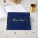 Elegant Winter / Holiday / Christmas / Birthday Party Guest book w/ Gold & Navy Blue Confetti Dots