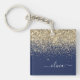 Gold Navy Blue Glitter Script Monogram Girly Name Key Ring