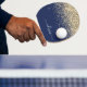 Gold and Navy Blue Sparkle Glitter Script Monogram Name Ping Pong Paddle. This makes the perfect sweet 16 birthday, wedding, bridal shower, anniversary, baby shower or bachelorette party gift for someone that loves glam luxury and chic styles.