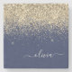 Gold Navy Blue Glitter Script Monogram Girly Name Stone Coaster