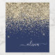 Gold Navy Blue Glitter Script Monogram Girly Name Wine Label
