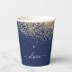 Gold Navy Blue Glitter Sparkle Monogram Paper Cups