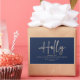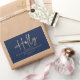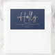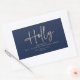 Gold effect and navy blue modern minimal script elegant simple geometric holly holiday Christmas card.