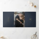 Modern simple minimal typography trendy faux gold typography navy blue all in one budget wedding invitation template with 2 photos, rsvp and details with scanning QR codes featuring a chic trendy calligraphy script and dark overlay. ++++++++++++ Easy to personalize with one or two custom photos (you can upload the same photo on both sides) and guest information! The invitation is suitable for classic formal contemporary weddings.