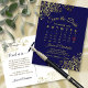 This beautiful save the date postcard will give your friends and family advance notice of your upcoming wedding. It features a clever design with a custom calendar where you can put a heart around your wedding date. The background is navy blue, and there are decorative gold faux foil frilly accents in the corners. The back has a cute graphic reading "pencil us in" with space for your own custom note.