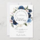 Gold Navy Blush All in 1 Budget QR Code Wedding Invitation. Hand painted watercolor floral wedding invitation featuring flowers in shades of dusty blue, navy and blush with golden lineart illustrations, modern calligraphy script and QR code with details in the back. Beautiful elegant watercolor floral all in one wedding invitation perfect for rustic weddings and outdoor summer weddings. You can personalise the wording, font style, colour and size in front and back of the card. Please feel free to contact me for matching items.