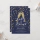 Beautiful gold & navy bridal shower invitation featuring gold champagne glasses & confetti with a coordinating gold confetti back for an extra special touch.
