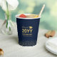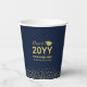 This modern graduation party paper cup features gold typography "Class of 20YY (graduation year)" and a graduation cap graphic with a confetti background. You can customise the text in black. More colour options and party supplies are available at my shop BaraBomDesign.