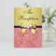 Gold Navy Coral Sequins Bow Wedding Reception Invitation