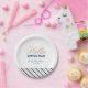 This modern baby shower party plate features gold glitter typography and stripes. More matching items available in my shop BaraBomDesign. (invitation, thank you card, thank you sticker and more)