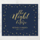 This chic navy blue & gold rehearsal dinner label will add stylish detail to your special day. The design features modern gold script "the night before" and confetti background. You can personalise the napkin with your name and event. Matching party invitations and stationeries are available in my shop BaraBomWedding.