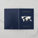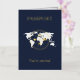 Imagine the excitement your guests will feel when they receive our "Passport to Forever" folded wedding invitations. The cover features a rich navy blue background with real, lustrous gold foil accents, creating a stunning and elegant first impression. This exquisite combination sets the tone for a wedding celebration that is both opulent and memorable. The cover design mirrors a real passport, replacing the conventional emblem with intertwined rings, romantic hearts, and delicate floral motifs, all rendered in elegant gold foil. The "Passport to Forever" insignia gleams in real gold foil, signifying the romance and adventure that await.