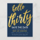Gold Navy Save Date Thirty Birthday Party Postcard