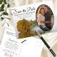 These beautiful postcards are a wonderful way to let your friends and family know to save the date for your upcoming wedding. They feature an elegant, classy, and romantic design with a single long-stemmed gold ochre or mustard yellow coloured rose reflecting in a pool of water, and your photo in an oval shaped frame. The caption reads Save the Date with space for your names, the date, and location. The back has a cute "pencil us in" graphic with space for a short note and your signatures.