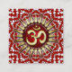 Business Card template with red and white colour scheme, Geometric pattern centred with metallic gold Sanskrit symbol for meditation, Yoga business cards. Makes a great business card for those in the New Age, Yoga, Healing, Alternative Fashion, Eastern Jewellery, Holistic industry and business including Yoga Instructors, Massage, Natural therapy schools + more.