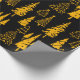 Gold on Black Christmas Trees Wrapping Paper