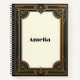 A gold frame with curved corners, on a black background, gives this notebook a classic art deco look. Elegant, and perfect for home, the office, or at school.