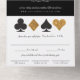 This convenient all in one wedding invitation features elegant typography and an accent graphic of playing card suits in white and gold faux glitter. Perfect for a Las Vegas wedding in a little chapel off the strip, all you need is love and a witness or two!