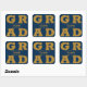 GRAD in bold gold lettering fills the corners of these navy blue background grad square stickers. Congratulations above the name of your graduate and the Class of below. SEE ENTIRE COLLECTION of pre-done colour combinations, invitations, paper plates, napkins, signs and more in our store.