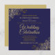 Gold on Navy Simple Elegant Square Wedding Invitation