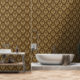 Gold on Rich Brown Classic Damask Pattern Wallpaper