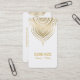 Elegant gold ornate geometric paisley design over white background, beauty and wellness business card template.
