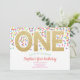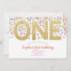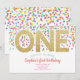 Gold One Rainbow Confetti Baby Girl 1st Birthday Invitation