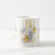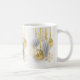 Beautiful silver and gold ornaments and snowflakes accent this holiday mug, a perfect addition to your holiday decor or a fun gift to give.