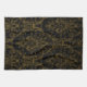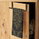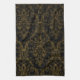 Gold Outline Black Floral Swirls Damask Monogram Tea Towel