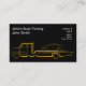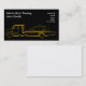 Stylised gold outline of a rollback wrecker with a loaded sedan. This towing business card could be used by repair shops, auto insurance, or body shop repair.