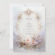 Invite your guests into a world of opulent romance and ethereal beauty with this exquisite wedding invitation. The design features a delicate, thin gold oval frame set against a luminous soft white and lavender-pink backdrop. The frame is magnificently adorned with intricate gold baroque scrollwork and highlighted by various small gemstone accents and faux pearls, instantly conveying antique prestige. Lush clusters of velvety blush pink roses and delicate filler flowers cascade around the bottom, interwoven with shimmering metallic gold leaves and sprigs. The entire aesthetic is airy, sophisticated, and perfectly sets the stage for a luxurious, high-end, or destination wedding. This invitation card is ideally suited for a luxury baroque-themed wedding, a high-end formal engagement celebration, or an elegant anniversary party. It would also perfectly suit a sophisticated bridal shower or a serene, elegant vow renewal ceremony. The card's captivating blend of ornate gold accents and ethereal florals ensures it is versatile for any solemn ceremony, corporate gala, or refined birthday announcement.