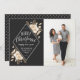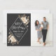 Spread cheer this year with this elegant holiday photo card featuring hand painted gold flowers with a vintage feel on a dark background. Says "Merry Christmas and Happy New Year" in stylish stacked fonts. See our shop for more pieces in this design!
