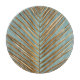 Closeup view of gold painted natural tropical date palm leaf on light muted cyan blue background. Decorative diagonal geometrical floral pattern design.