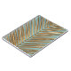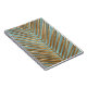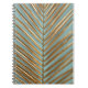 Closeup view of gold painted natural tropical date palm leaf on light muted cyan blue background. Decorative diagonal geometrical floral pattern design.
