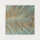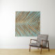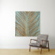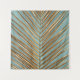 Closeup view of gold painted natural tropical date palm leaf on light muted cyan blue background. Decorative diagonal geometrical floral pattern design.