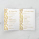 Indian wedding program with gold paisley designs, bi-fold. Perfect for traditional weddings and other special events.