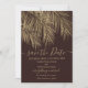 Modern gold palm tree elegant save the date. Modern simple faux gold palm tree with simple typography, a trendy and tropical save the date wedding theme on palm tree leaf with editable red burgundy.