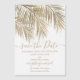 Modern gold palm tree elegant save the date. Modern simple faux gold palm tree with simple typography, a trendy and tropical save the date wedding theme on palm tree leaf with editable white.