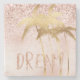 Gold Palm Trees Pink Ombre Glitter Dream Stone Coaster