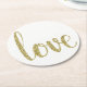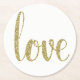 Gold paper coasters, love, glitter font round paper coaster