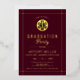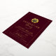Gold paramedic EMT Class of 2026 burgundy graduation foil invitations. Celebrate the outstanding accomplishment of your Class of 2026 paramedic graduate with these personalized burgundy invitations adorned with gold foil details. These invitations are a heartfelt recognition of the graduate's dedication and resilience in the demanding field of emergency medicine. The iconic gold Rod of Asclepius, a traditional symbol of the paramedic profession, prominently highlights the graduate's chosen career, while the refined gold borders gracefully converge at the corners, adding a touch of elegance to the overall design.
