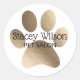 Elegant and modern white and faux gold foil paw print logo product stickers. Easily customized for your pet related business.