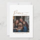 Send warm holiday wishes with this gold-accented "Peace on Earth" family Christmas card, featuring a beloved dog photo. The minimalist design includes a photo insert, showcasing whimsical script and simple calligraphy. Perfect for sharing your merry moments, this elegant card blends modern style with timeless holiday charm.