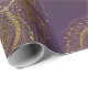 Gold peacock feather in violet background wrapping paper