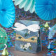 Peacock Fantasy on Emerald Blue Green Silk Designed by Nadine May